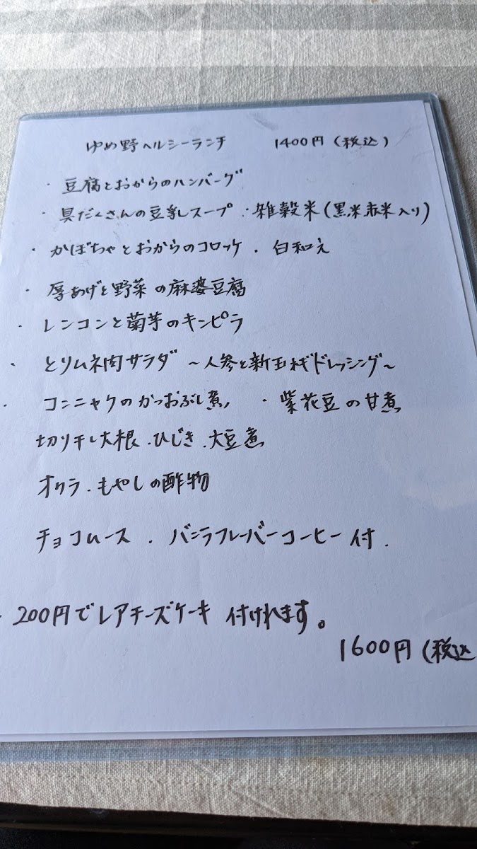 Yumeno specializes in a unique menu featuring a variety of wholesome dishes that highlight the richness of seasonal ingredients. Their Healthy Lunch, priced at 1,600 yen including dessert, is a popular choice among patrons. The lunch set comprises a vibrant array of ten side dishes, fragrant rice infused with both black and red rice, and a signature hearty soy milk soup loaded with fresh vegetables. Each component is thoughtfully prepared, showcasing a commitment to healthy eating without sacrificing flavor.